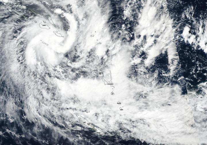 image: NASA-NOAA's Suomi NPP satellite captured a visible image of Tropical Cyclone Harold over the Solomon Islands in the Southern Pacific Ocean on April 3, 2020.