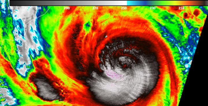 image: NASA-NOAA's Suomi NPP satellite passed over Tropical Cyclone Amphan on May 18 at 4:28 p.m. EDT (2028 UTC) and the VIIRS instrument aboard captured cloud top temperatures using infrared light. Cloud top temperatures were as cold as minus 80 degrees Fahrenheit (minus 62.2 Celsius), indicating powerful storms.