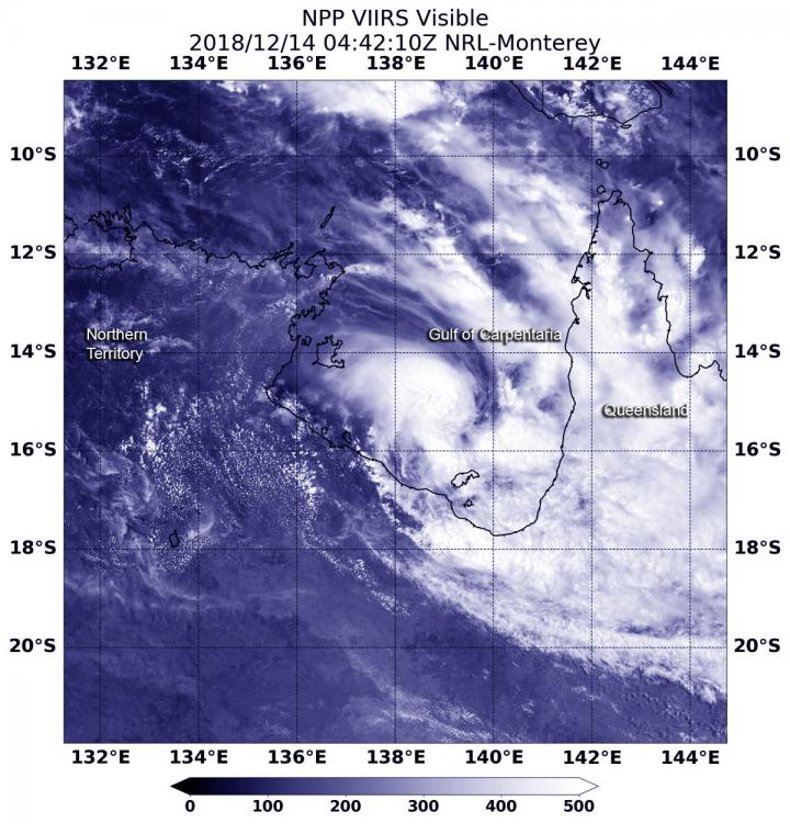 image: NASA-NOAA's Suomi NPP satellite passed over the Southern Pacific Ocean and captured a visible image of Tropical Cyclone Owen moving through Australia's Gulf of Carpentaria.