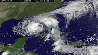 An animation of satellite observations from Aug. 27-29, 2012, shows Hurricane Isaac move through the Gulf of Mexico and make its first landfall in southeastern Louisiana on Aug. 28 at 7:45 pm EDT (1145 UTC), second landfall on Aug. 29 at 6 am EDT (1000 UTC). This visualization was created by the NASA GOES Project at NASA Goddard Space Flight Center, Greenbelt, Md., using observations from NOAA's GOES-13 satellite.