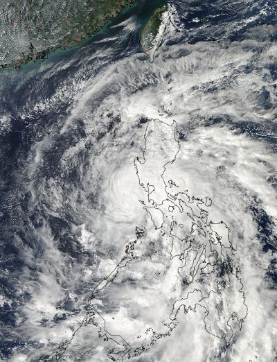Tropical Storm Son-tinh soaked the Philippines and is now moving into the South China Sea. NASA's Aqua satellite captured a visible image of the storm as the bulk western half of the storm had already moved over water.