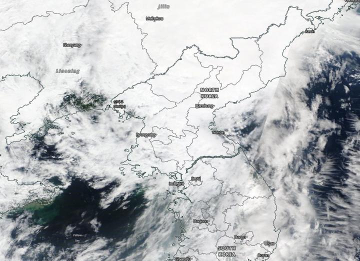 image: NASA's Terra satellite provided a visible image to forecasters of Tropical Storm Bavi after it made landfall in northwestern North Korea on Aug. 27 and began moving into China.