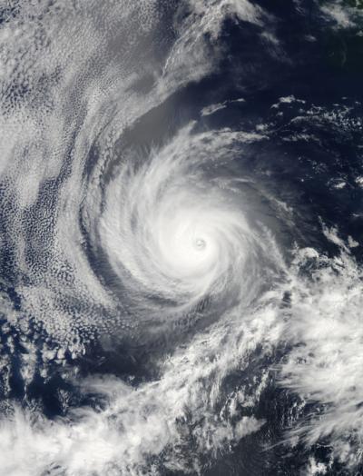 On Wednesday, July 11, 2012 at 2120 UTC (5:20 p.m. EDT/2:20 p.m. PDT), the Moderate Resolution Imaging Spectroradiometer (MODIS) instrument captured a visible image of Hurricane Emilia that showed an eye with some high clouds overhead. The next day, Thursday, July 12, the Atmospheric Infrared Sounder (AIRS) instrument on Aqua captured an infrared image of Hurricane Emilia at 0929 UTC / 5:29 a.m. EDT. The infrared data showed strong thunderstorms and cold cloud tops surrounding the eye of the hurricane. Some of the cloud top temperatures were almost as cold as 210 kelvin (-81.6 Fahrenheit/-63.1 Celsius), indicating powerful thunderstorms approaching the top of the troposphere.