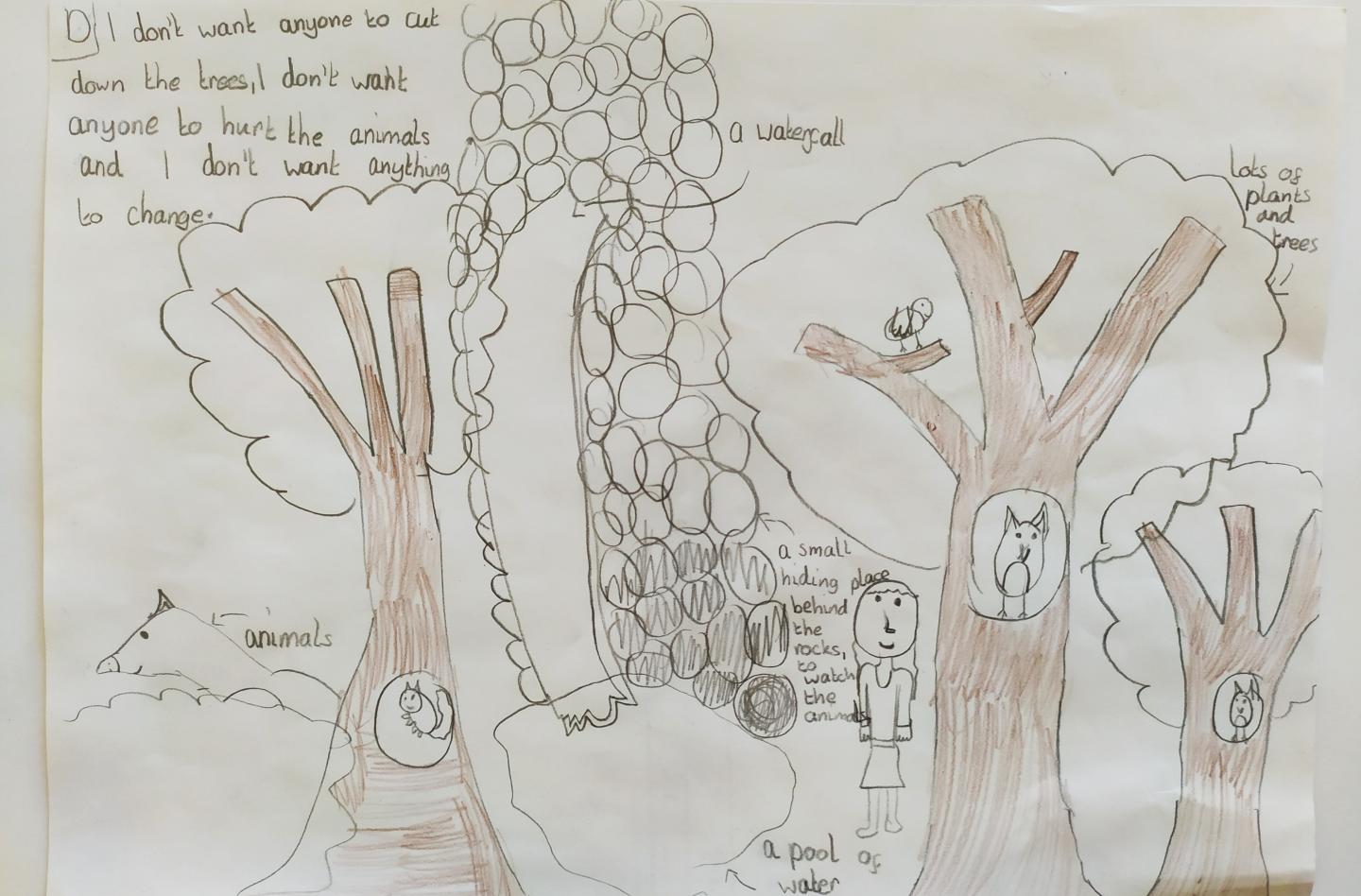 "The drawings depicted nature and outdoor spaces as being interconnected with all aspects of wellbeing. For example, being able to play outside boosts physical wellbeing, while being able to stay calm and appreciate the beauty of nature can be linked to emotional or mental health.