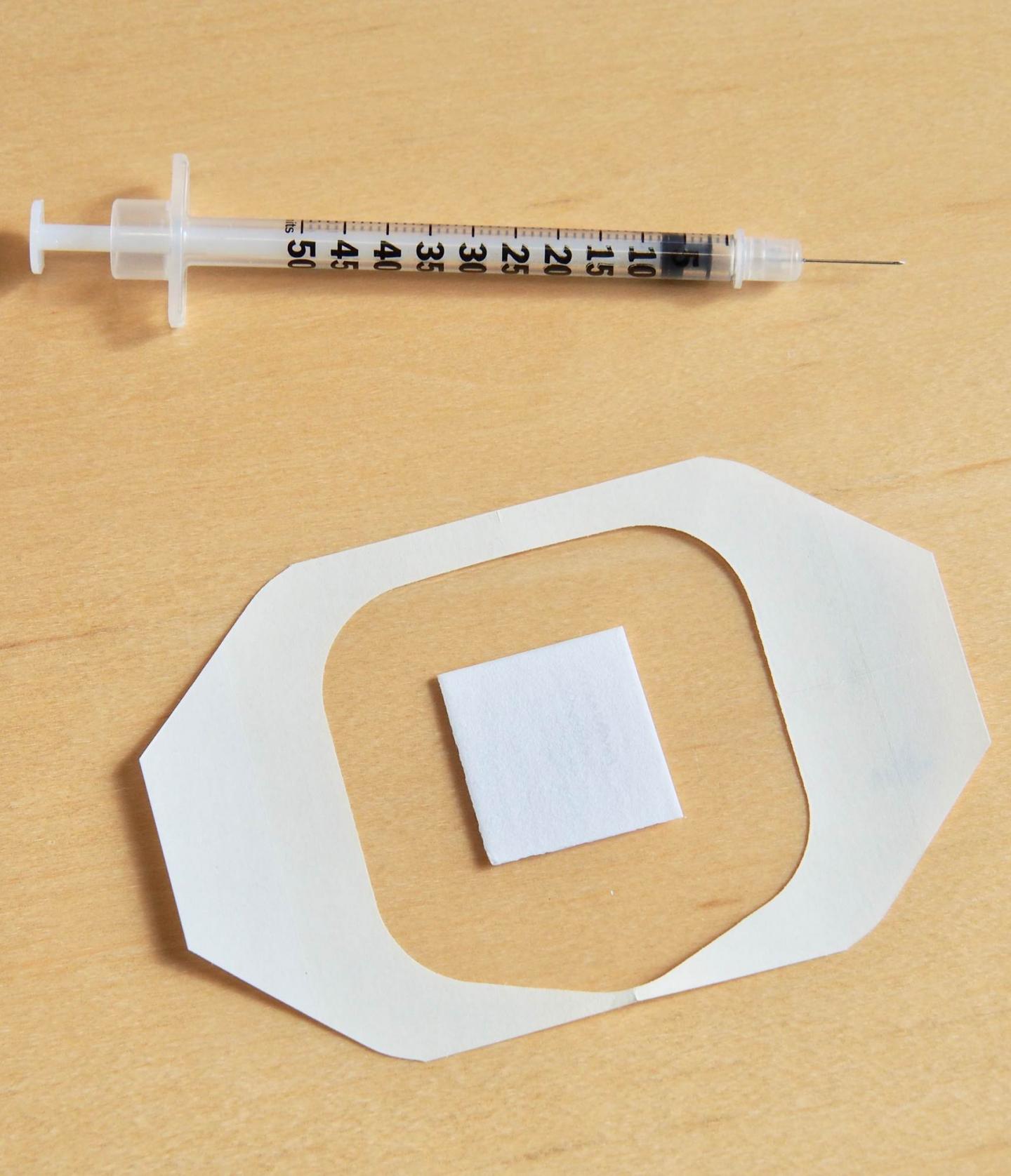 image: A new needle-free flu vaccine patch revved up the immune system much like a traditional flu shot without any negative side effects, according to a study in the Journal of Investigative Dermatology. Though the research is in the early stages it's an important step toward a technology that could replace needle-based vaccination methods that are difficult to deploy in developing countries. The new patch is pictured below a traditional needle-based flu shot.