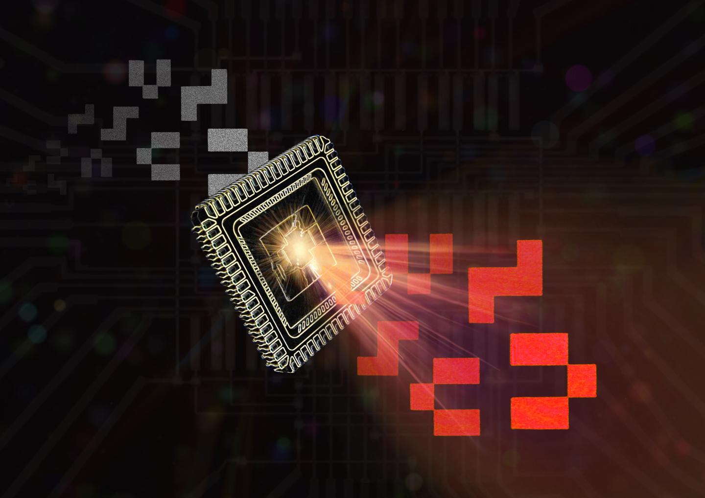 image: A picture is analyzed by the chip, which then provides the appropriate output signal.