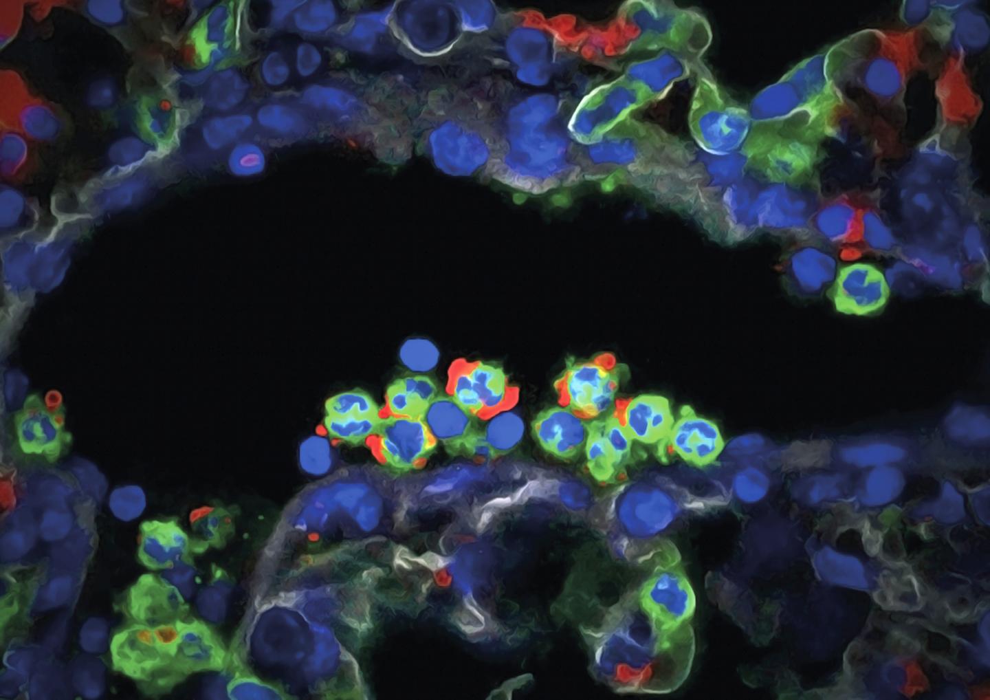 image: Neutrophils (green) infiltrating a damaged lung.