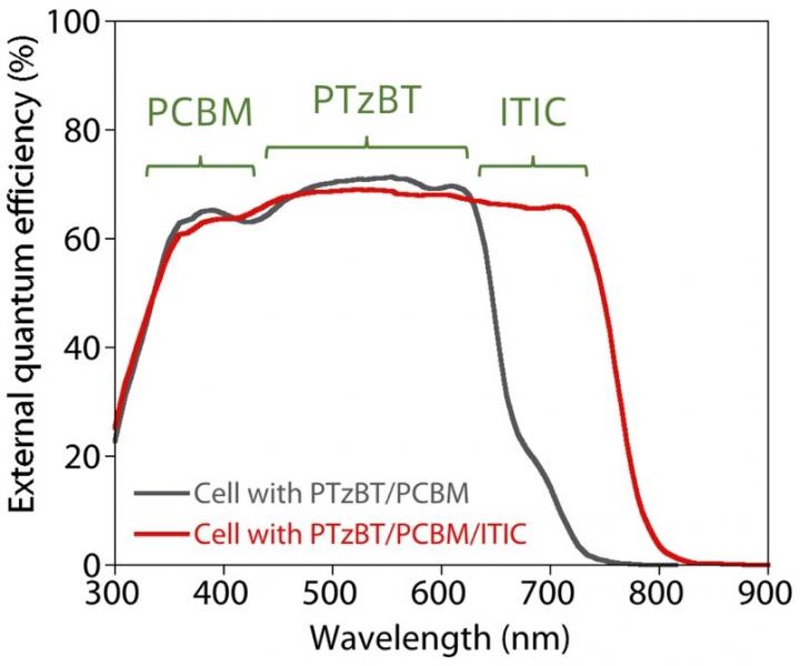 image: ITIC as a sensitizer showed the external quantum efficiency that is similar to the host polymer PTzBT despite the fact that only 6wt% of ITIC was added to the PTzBT/PCBM host materials.