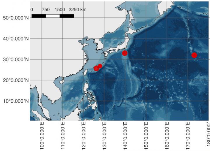 image: Map of the North-western Pacific Ocean, showing the geographical distribution of Squalus shiraii