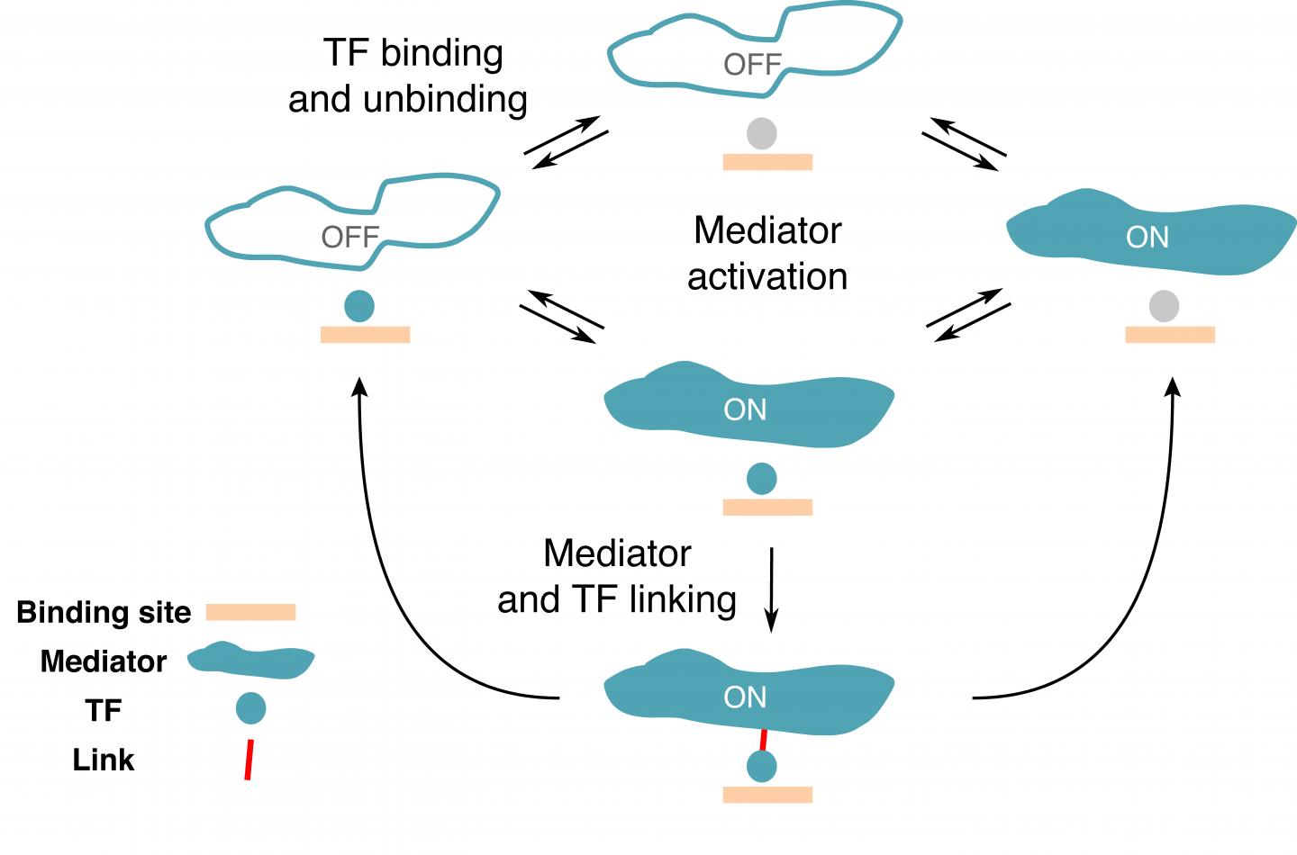 For prokaryotes - simple cellular organisms without a nucleus, like bacteria - biophysical models already manage to predict gene expression based on the interaction between TFs and DNA regulatory regions. In prokaryotes, the TF binding sites on DNA are rather long and specific, making it easier for the TFs to find their target. In higher organisms called eukaryotes whose cells have a nucleus, mathematically describing the process of gene regulation proved to be much more difficult. Now, a team of researchers at the Institute of Science and Technology Austria (IST Austria) found a way to describe how the interaction between the different regulatory molecules in eukaryotes could look like.
