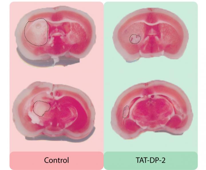 Mice that received an injection of TAT-DP-2 after a stroke had smaller areas of stroke damage, and their long-term neurological function was better than that of untreated animals.