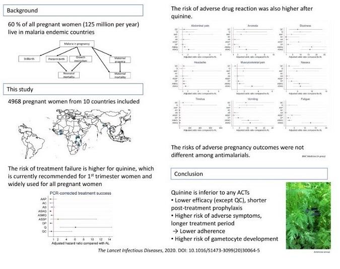 The research, published in The Lancet Infectious Diseases is the fruit of joint project between investigators from around the world to conduct the largest individual patient data meta-analysis to date under The WorldWide Antimalarial Resistance NetworkWWARNumbrella. The study found that artemether-lumefantrine (AL) (*1) and other artemisinin-based combination therapies (ACTs) (*2) were significantly more effective than quinine, the current recommended treatment. Authors urgently call for further investigation into dose optimisation for pregnant women to ensure the highest possible treatment success. A joint research group consisting of WWARN, A joint research group consisting of WWARN,The Nuffield Department of Medicine, University of Oxford and The Institute of Medical Science, The University of Tokyo announced on the 29th (GMT).