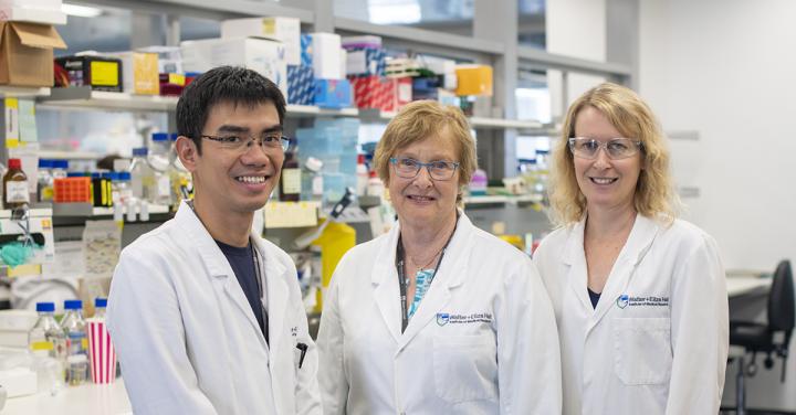 image: Walter and Eliza Hall Institute researchers Dr Hai Vu Nguyen, Professor Suzanne Cory AC and Dr Cassandra Vandenberg have revealed a new vulnerability in cancers driven by high levels of MYC.