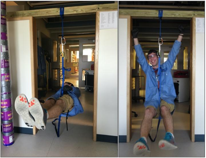 image: A temporary adhesive based on molecular solids is strong enough to hold a chemistry PhD candidate, but can be released without force through the use of heat in a vacuum.