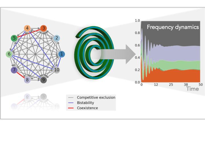 "Thanks to this method we uncovered a simple equation that belongs to the family of the replicator equations (widely used in evolutionary game theory), which governs frequency dynamics between species in our model. This type of equations captures the essence of the competition between multiple strategies in a multi-player game and how their success changes over time. Surprisingly, we find it here, emerging from the matrix of 'social' interactions", explains Erida Gjini. With these results, it becomes clear that global dynamics of the system can be predicted entirely from the type and quality of pairwise interactions.