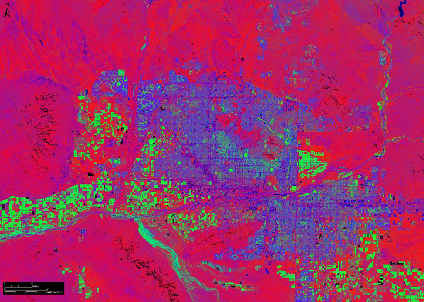 image: A satellite measurement of urban temperatures across greater Phoenix, AZ