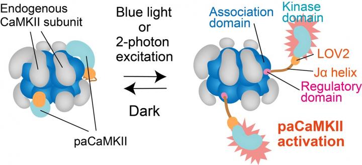 Fortunately, a research team at National Institute of Physiological Sciences, Japan, led by Dr. Hideji Murakoshi, resolved this issue. The team fused CaMKII with a specific domain of a plant photoreceptor (a type of cell that responds to light). This domain called "LOV2-Jα" caused CaMKII to become sensitive to light, after which they expressed this new photoactivatable CaMKII in different types of isolated neurons and in living mice. Their findings are recently published in the journal Nature Communications.
