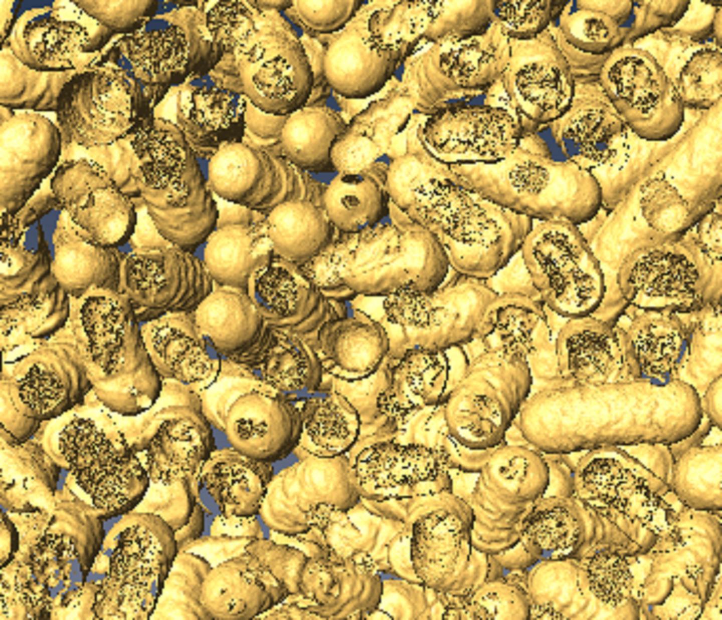 image: A 3-D rendering of dead bacteria after it has come into contact with the NanoZymes.