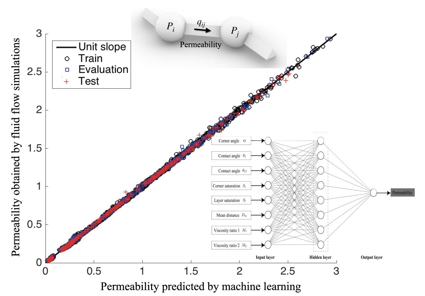 "We trained an artificial neural network using a database built from the results of simulations. These simulations considered different combinations of geometric parameters, viscosity ratios, and so on," says lead author Fei Jiang. "We found that the trained neural network can predict the multiphase permeability with extremely high accuracy."