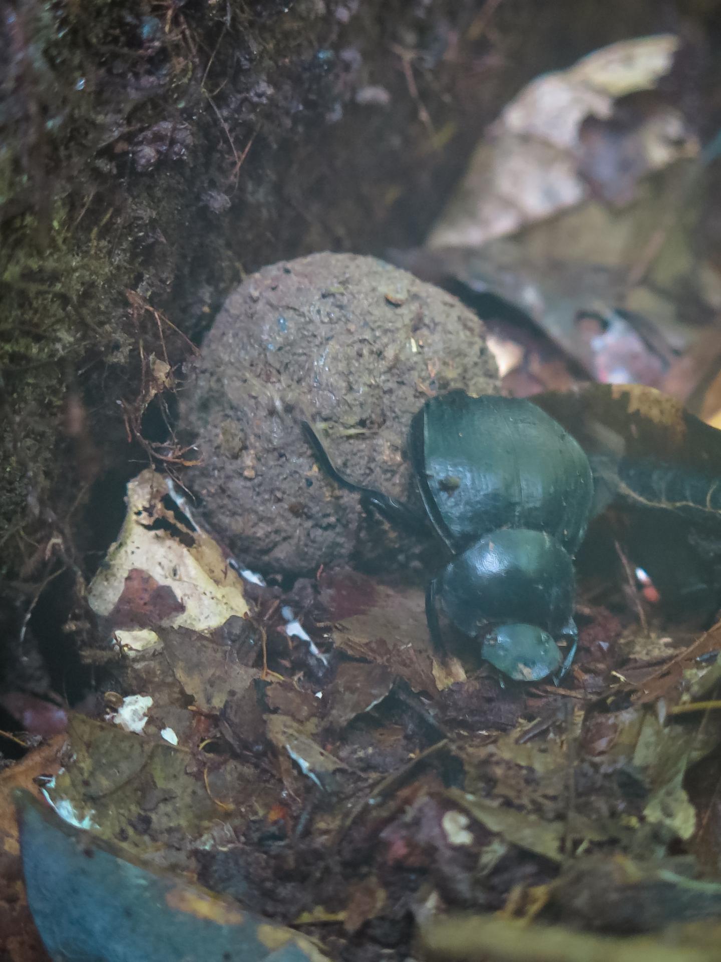 image: Dichotomius enceladus, the largest dung-roller beetle species in the study region photographed while rolling a golf ball-sized morsel of dung within an undisturbed forest in the Santarém region of the Brazilian state of Pará, 2017