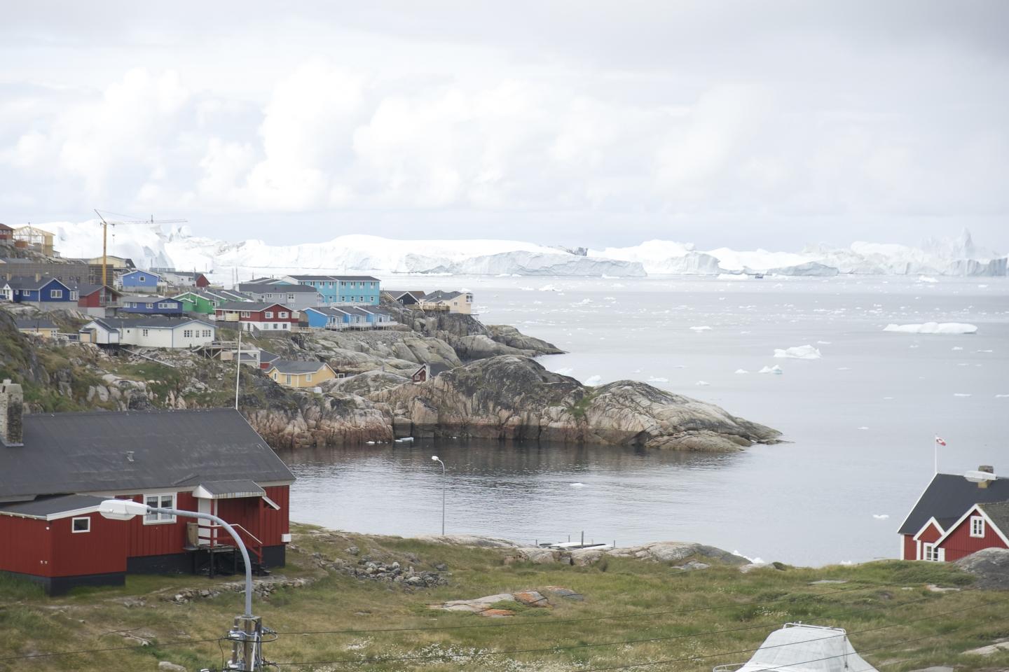 image: Ilulissat, known as 'the city of icebergs' sits adjacent to Greenland's Ilulissat Glacier, which flows into the Atlantic Ocean. Such outlet glaciers lead ice sheet loss in Greenland. New research shows that if this loss continues at its current rate, it could result in an ice-free Greenland by the year 3000 and 24 feet of global sea level rise.