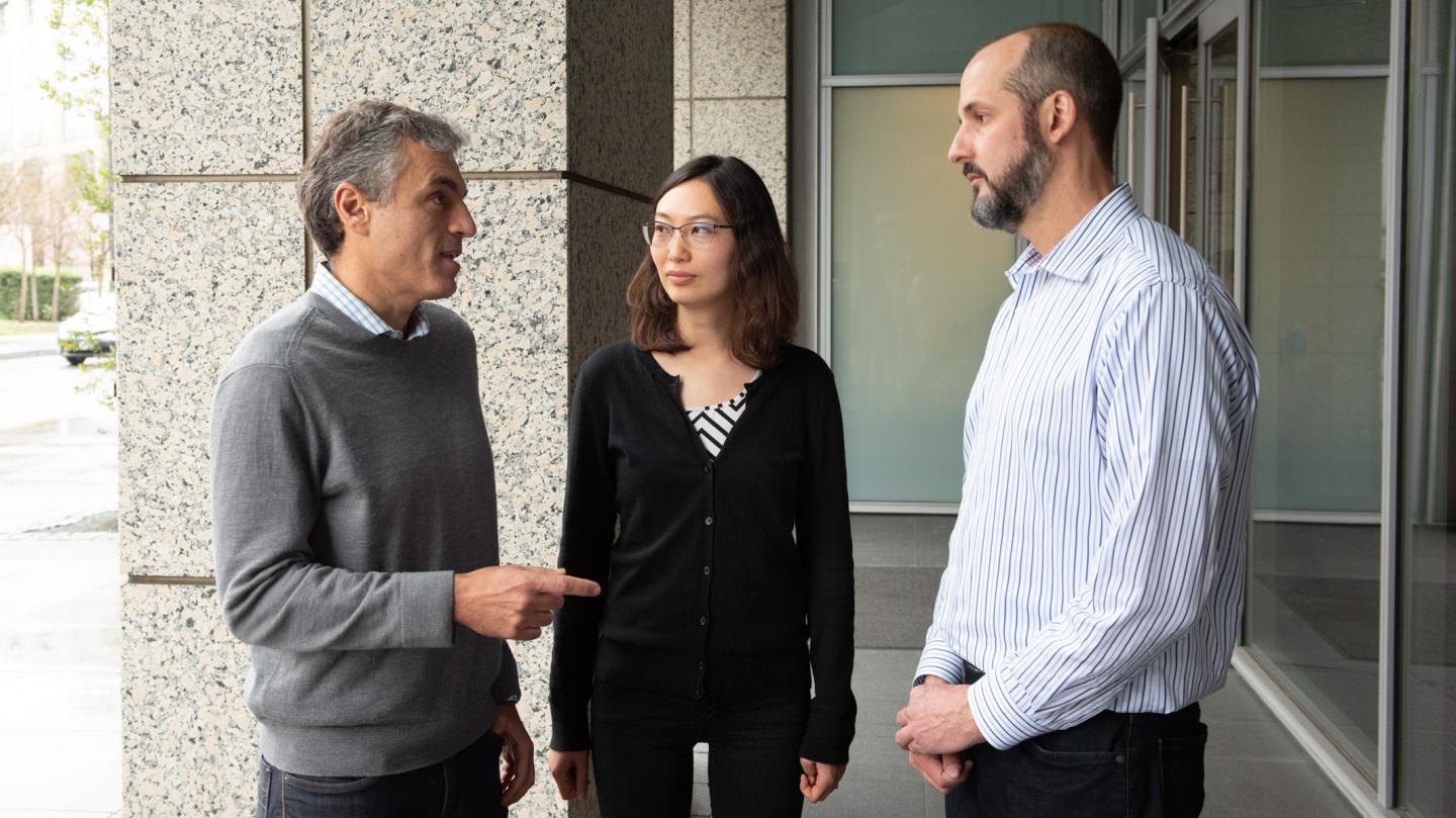 image: Gladstone researchers Jorge Palop and Keran Ma are collaborating with Jesse Hanson from Genentech to develop therapies for Alzheimer's disease and Dravet syndrome.