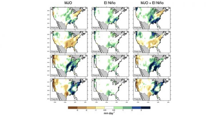 The researchers found that ENSO modifies the teleconnection signals associated with the Madden-Julian Oscillation in the United States. While at the same time, the El Niño Southern Oscillation acts to interfere with the MJO signals, resulting in significantly enhanced or masked rainfall anomalies in the U.S.