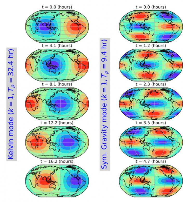 "For these rapidly moving wave modes, our observed frequencies and global patterns match those theoretically predicted very well," stated lead author Sakazaki. "It is exciting to see the vision of Laplace and other pioneering physicists so completely validated after two centuries."