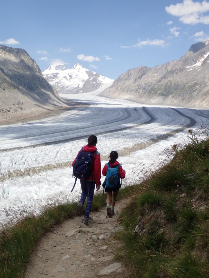 image: Global climate change threatens the continued existence of glaciers, such as the Aletsch Glacier in Switzerland, photographed in July 2015.