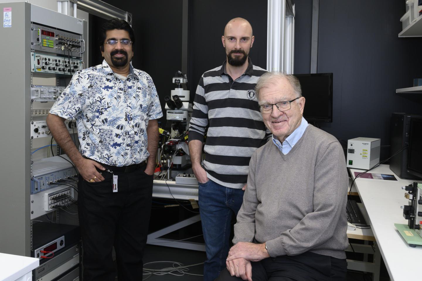 image: Shreyas M. Suryanarayana, Juan Pérez-Fernández and Sten Grillner, researchers at the Department of Neuroscience, Karolinska Institutet, Sweden.