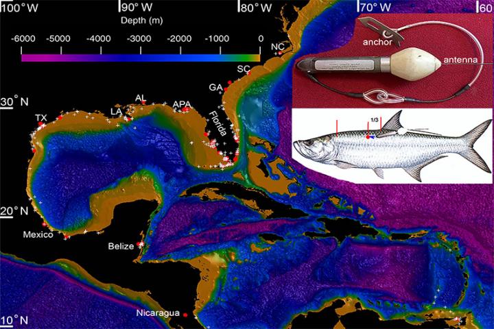 Using electronic satellite tags, the UM research team tracked nearly 300 Atlantic tarpon (Megalops atlanticus) in coastal waters of the western central Atlantic Ocean, Gulf of Mexico and Caribbean Sea, including as far away as Mexico, Belize and Nicaragua. The results showed that the mature tarpon make extensive seasonal migrations along a warm, seasonally moving ocean-water feature known as the 26o C isotherm where temperatures remain constant. They also found the fish use both freshwater and estuarine habitat throughout their life and identified several previously unknown spawning locations in Florida and the Gulf of Mexico.