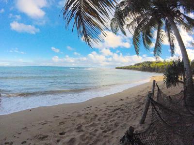 image: View of the beach of the main village of Analcohuat on Aneityum. Users must attribute the photo to Koji Lum.