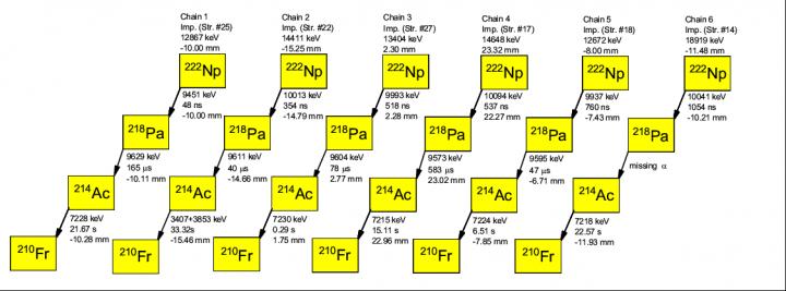 Researchers then established six α-decay chains and determined the decay properties of 222Np.