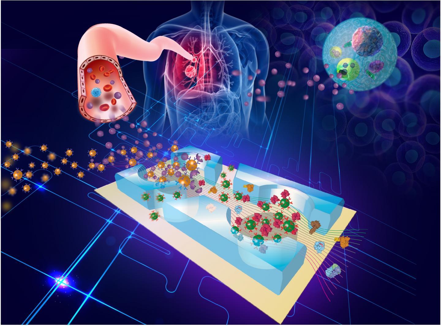 Now, Zeng and colleagues from the University of Kansas Medical Center and KU Cancer Center have just published a breakthrough paper in the Royal Society of Chemistry journal describing their invention of a miniaturized biomedical testing device for exosomes. Dubbed the "lab-on-a-chip," the device promises faster result times, reduced costs, minimal sample demands and better sensitivity of analysis when compared to the conventional bench-top instruments now used to examine the tiny biomarkers.