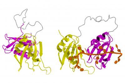 Splicing requires the cooperation of different proteins, i.e. splicing factors. One such splicing factor, U2AF, was examined by the Munich scientists. It consists of two structural modules and binds to the RNA near the intron*-exon* boundary. Professor Michael Sattler, Director of the Institute for Structural Biology at the Helmholtz Zentrum Muenchen and Professor of Biomolecular NMR Spectroscopy at the Technische Universitaet Muenchen, summarizes how the U2AF protein contributes towards splicing: "The spatial structure of the U2AF protein alternates between a closed and an open conformation. A matching RNA sequence in the intron causes the U2AF to assume an open conformation, which activates splicing and eventually leads to the removal of the intron."
