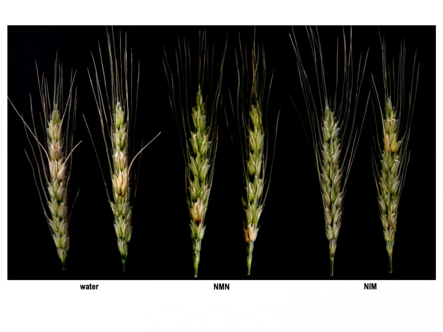When the team pre-treated with NIM the spikes of wheat plants (carrying the young grains that are later harvested to make flour) and then inoculated the plants with conidia of Fusarium graminearum (which causes head blight), the NIM pre-treatment strongly suppressed the disease. Pre-treated plants contain much less fungal biomass, and less of a mycotoxin it produces, compared with water-treated plants.