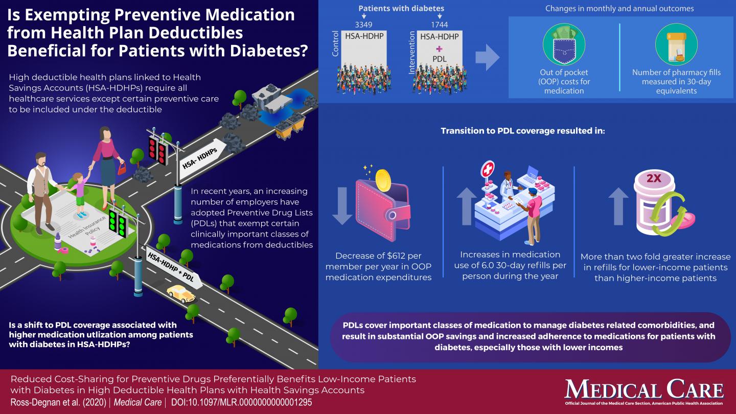 May 27, 2020 - For patients with diabetes - especially those with lower incomes - preventive drug lists (PDLs) of essential medications available with no deductible can reduce out-of-pocket costs while increasing use of important treatments, reports a study in a June supplement to Medical Care. The journal is published in the Lippincott portfolio by Wolters Kluwer.