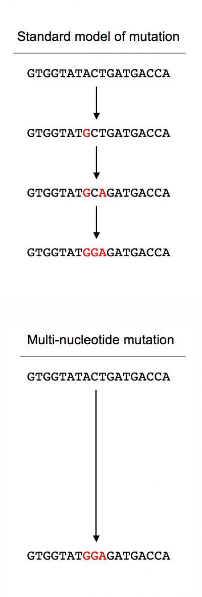 "Our work provides evidence for a possible new mechanism of adaptation," Hahn said. "It also raises questions about whether thousands of supposedly independent mutations others have observed in important genes are truly independent. Some of these genes will need to be reanalyzed, because the recognition that some of these mutations are actually MNMs could have an impact on many analyses of DNA sequences."