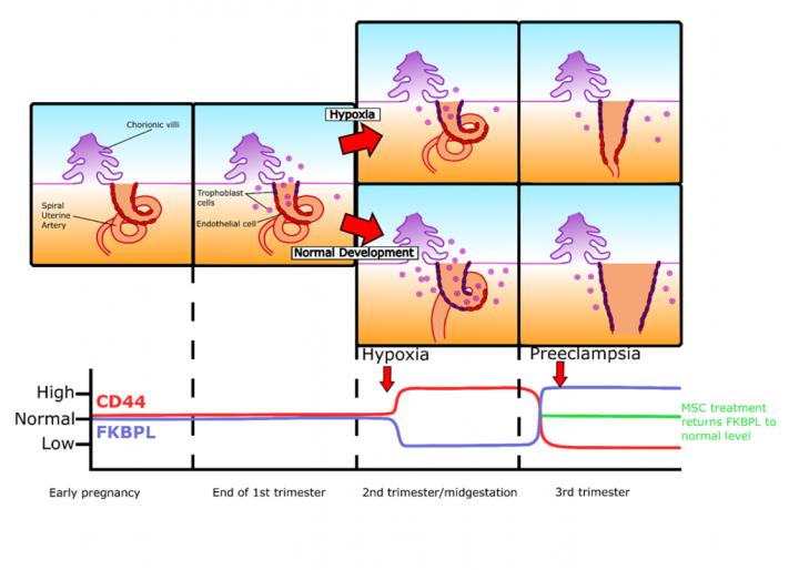 The research also has potential to enhance the development of therapeutics to treat preeclampsia because the increase in one of the biomarkers, FKBPL, can be inhibited by mesenchymal stem cells potentially stopping the development of preeclampsia.