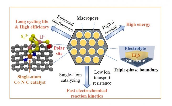 The highly oriented macroporous host can uniformly accommodate the sulfur while abundant active sites are embedded inside the host to tightly absorb the polysulfide, eliminating the shuttle effect and lithium metal corrosion. By bringing up a design principle for sulfur cathode in Li-S batteries, the joint team increased the batteries' energy density and made a big step towards the industrialization of the batteries.