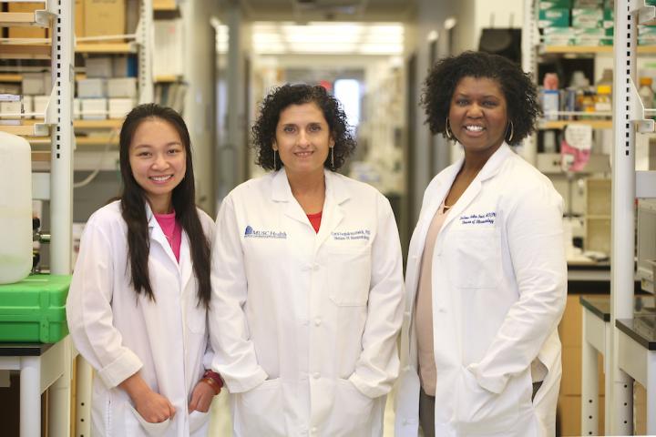 image: TL1 scholar XInh Xinh Nguyen (left), who studies scleroderma, shadowed Dr. DeAnna Baker Frost (right) as she treated patients with scleroderma. Both are mentored by Dr. Carol Feghali-Bostwick, who is associated director of the TL1 program at the Medical University of South Carolina.