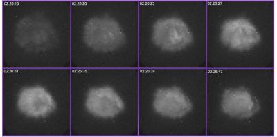 This is a sequence of images of the glow plasma discharge produced with transmissions at the third electron gyro harmonic using the HAARP HF transmitter, Gakona, Alaska. The third harmonic artificial glow plasma clouds were obtained with HAARP using transmissions at 4.34 megahertz (MHz). The resonant frequency yielded green line (557.7 nanometer emission) with HF on November 12, 2012, between the times of 02:26:15 to 02:26:45 GMT.