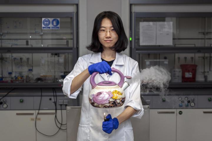 image: When supplying energy the method of its delivery is as important as its quantity. You probably won't manage to boil the water for your tea with a cigarette lighter. Here, PhD student Yirui Zhang illustrates this principle
