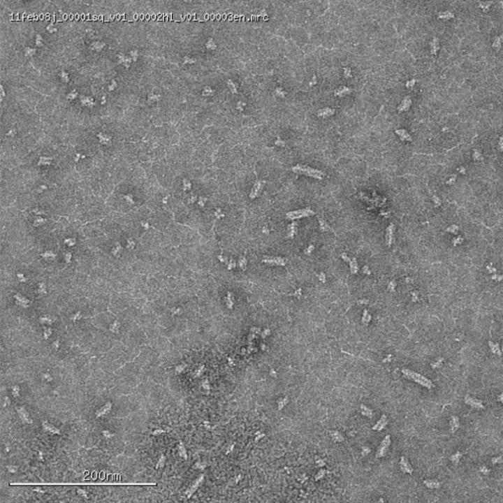 image: A negative stain electron micrograph of SgrAI/DNA filaments.