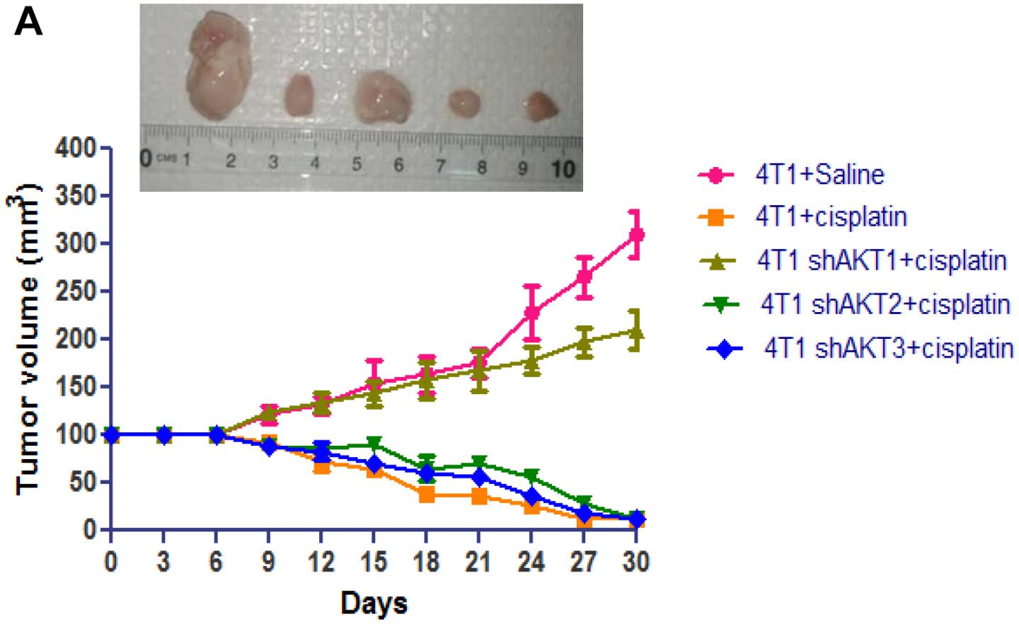 It was further demonstrated that loss of function of AKT1 isoform is associated with reduced sensitivity towards cisplatin treatment in triple-negative breast cancers cellular and syngeneic mice models.