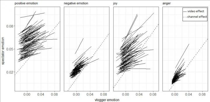 The team found evidence that there is both a sustained and an immediate effect that leads to YouTuber emotion correlating with audience emotion. When a YouTuber posts a video with a generally positive tone, the audience reacts with heightened positive emotions. The same is true for other emotional states.
