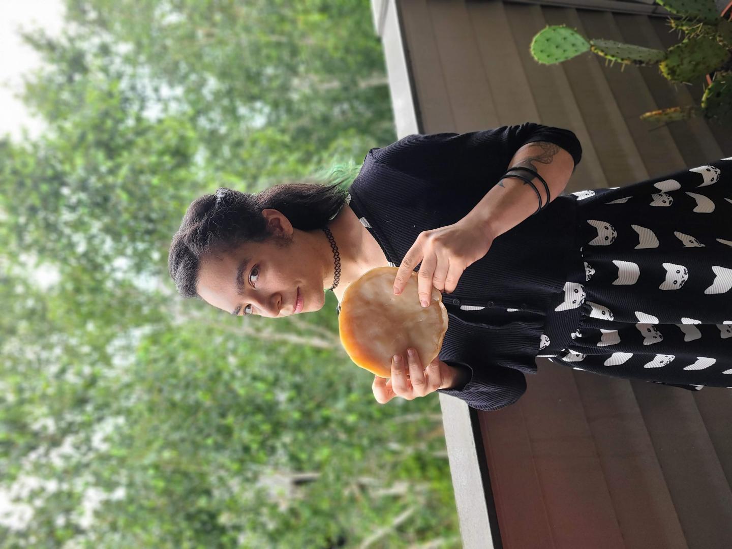 image: Keisha Harrison, a doctoral student at Oregon State University, with a kombucha SCOBY.