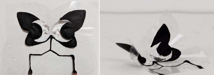 The researchers' early creations, which they've dubbed "Electriflow," include origami cranes that can bend their necks, flower petals that wiggle with the touch of a button and, yes, fluttering insects.