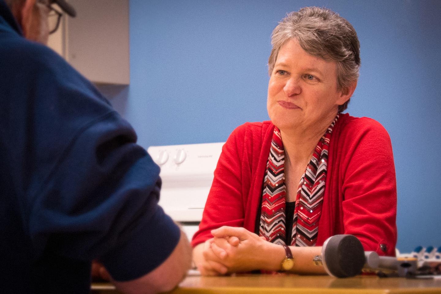 image: Anne Swisher--a professor with the WVU Division of Physical Therapy--works with a patient. Swisher and her colleagues enhanced WVU's physical therapy instruction to emphasize the profession's role in addressing opioid use disorder.