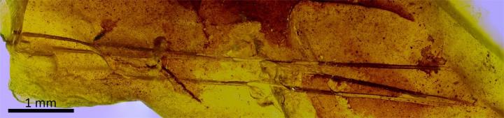 The amber from Ariño presents three mammalian hairs with its characteristic microscopic scale pattern, exceptionally preserved. The parallel disposition of the three hairs and their similar proportions allow researchers to identify it as a small lock from a mammal and it corresponds to the oldest finding of hair in amber. "The determination of both findings is very complex, but it is likely for the feather remains to correspond to the extinct birds Enantiornithes, like other feathers in amber. Regarding the lock of hair, we should consider that the surface scale pattern is similar to the current mammalian hair", notes Sergio Álvarez, researcher at the UB and first author of the study. "Ariño was already known for its vertebrate fossils, such as the dinosaurs